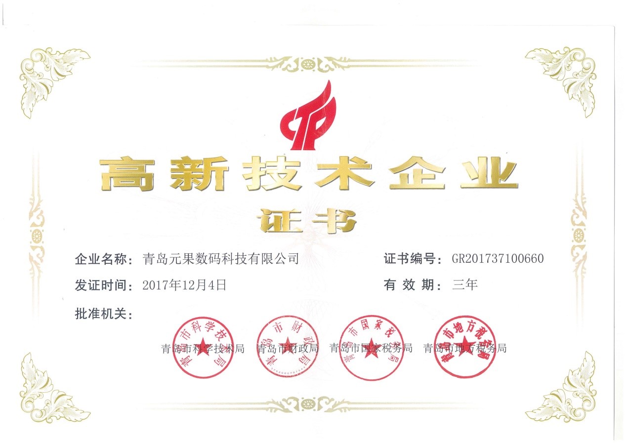 新春伊始,經(jīng)青島市科技局核準、國家科技部備案公示,青島元果數(shù)碼科技有限公司被認定為2017年度高新技術(shù)企業(yè)。這是對青島元果公司技術(shù)創(chuàng)新、管理創(chuàng)新全面、系統(tǒng)的高度評價和認可。