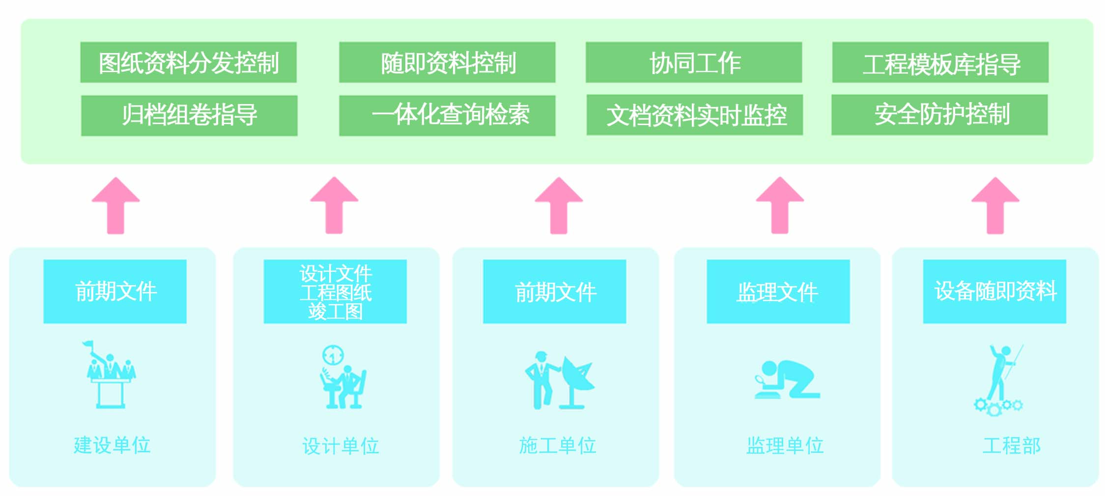 1、解決專兼職檔案人員大型工程項(xiàng)目過程檔案管理經(jīng)驗(yàn)欠缺的問題。我們將眾多檔案專家的大型工程項(xiàng)目檔案管理經(jīng)驗(yàn)和行業(yè)執(zhí)行標(biāo)準(zhǔn)嵌入到系統(tǒng),指導(dǎo)各參建單位何時(shí)、如何進(jìn)行何種文檔資料的管理和提交歸檔。使企業(yè)即使專兼職檔案人員經(jīng)驗(yàn)欠缺,也可以實(shí)現(xiàn)企業(yè)工程項(xiàng)目全過程的文檔有序管控、高效驗(yàn)收。